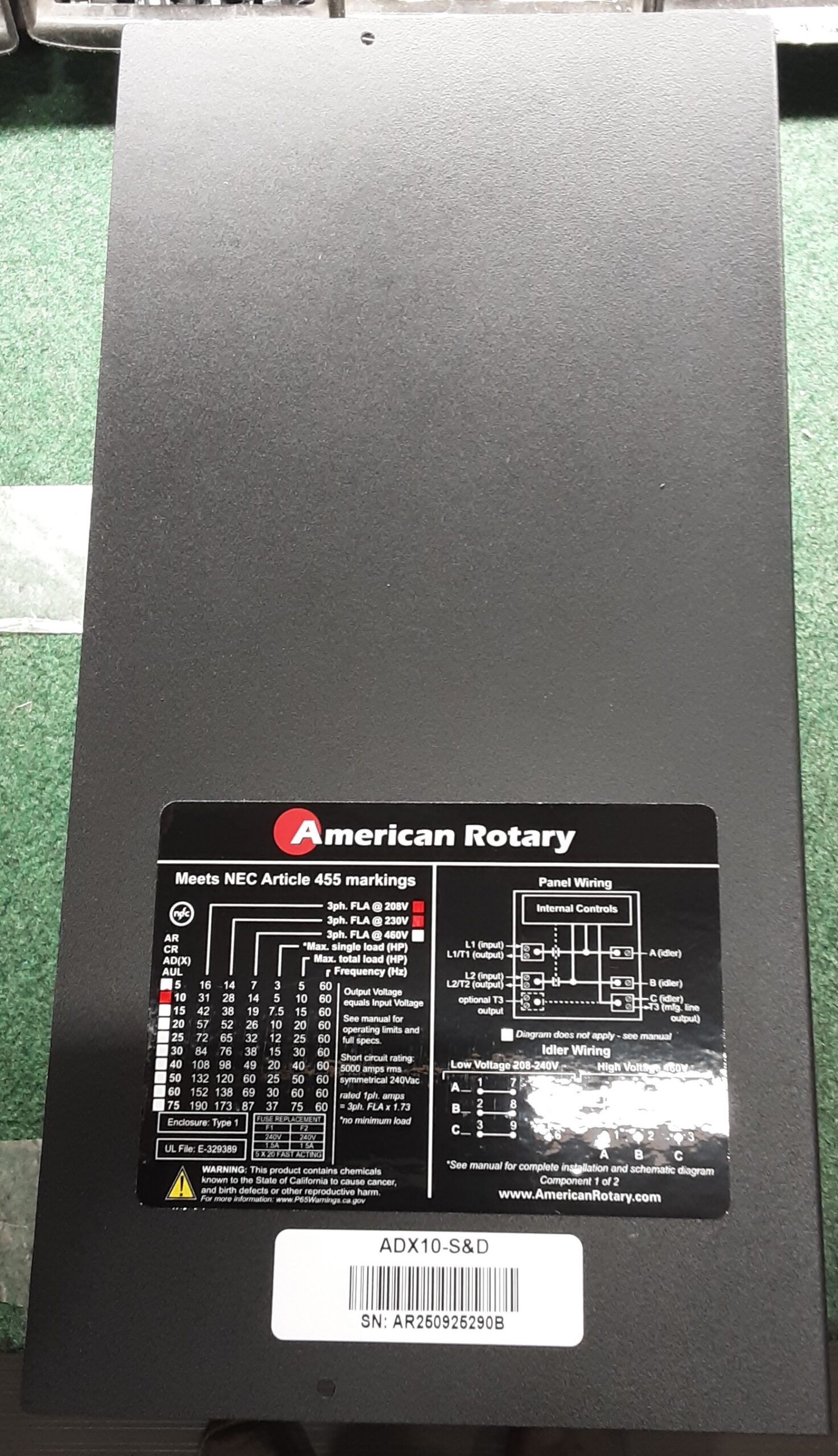 ADX Extreme Duty Smart Series – The ADX Smart Series Rotary Phase Converter is designed for high inertia/friction loads. The ADX rotary phase converters have current control to provide consistent torque while starting high inertia, extremely hard starting loads, yet are precise enough for CNC applications. Best for: High Inertia/friction loads such as pumps, fans, compressors, blowers, lathes, high RPM CNC, dust collectors and fly wheels.