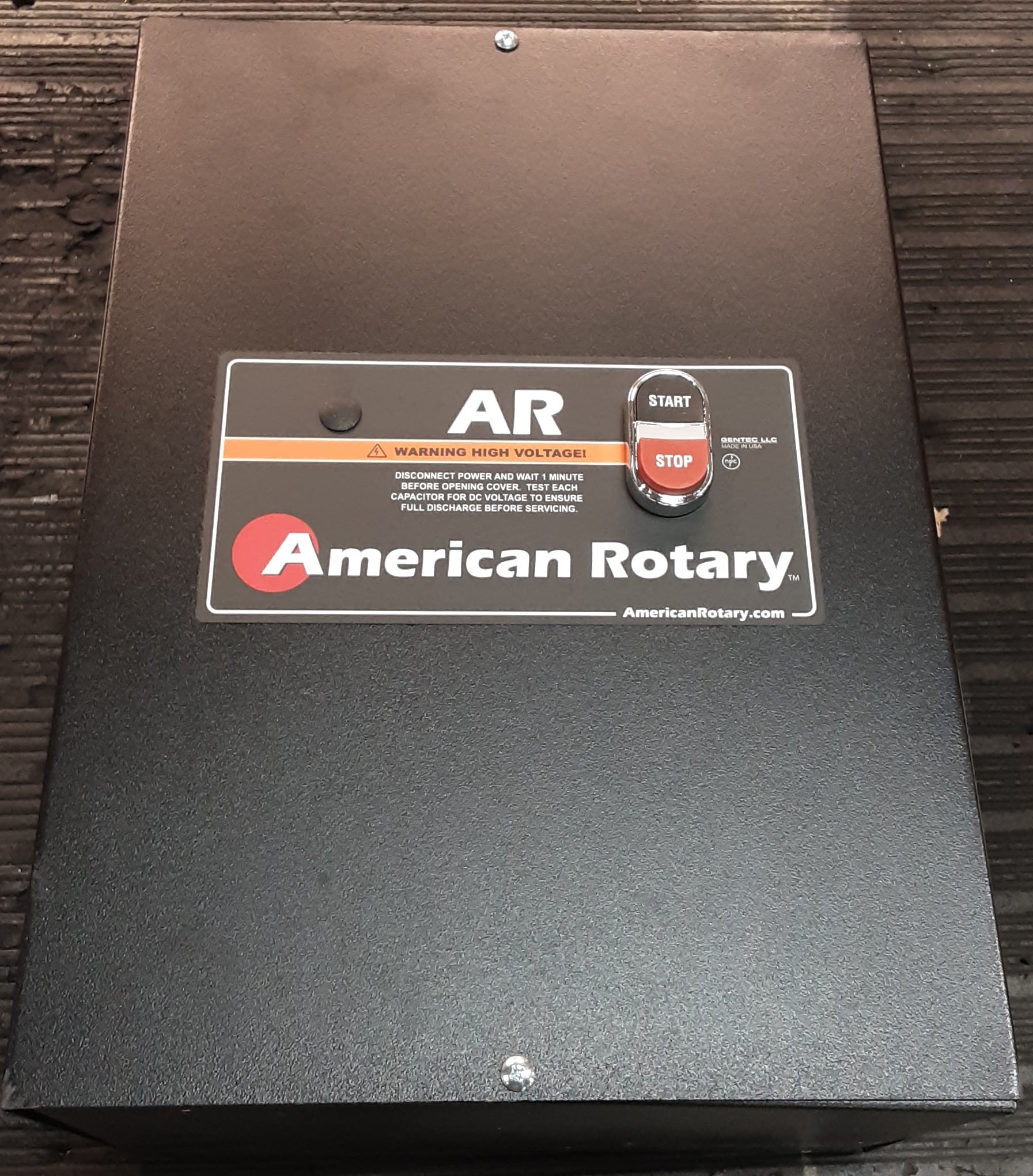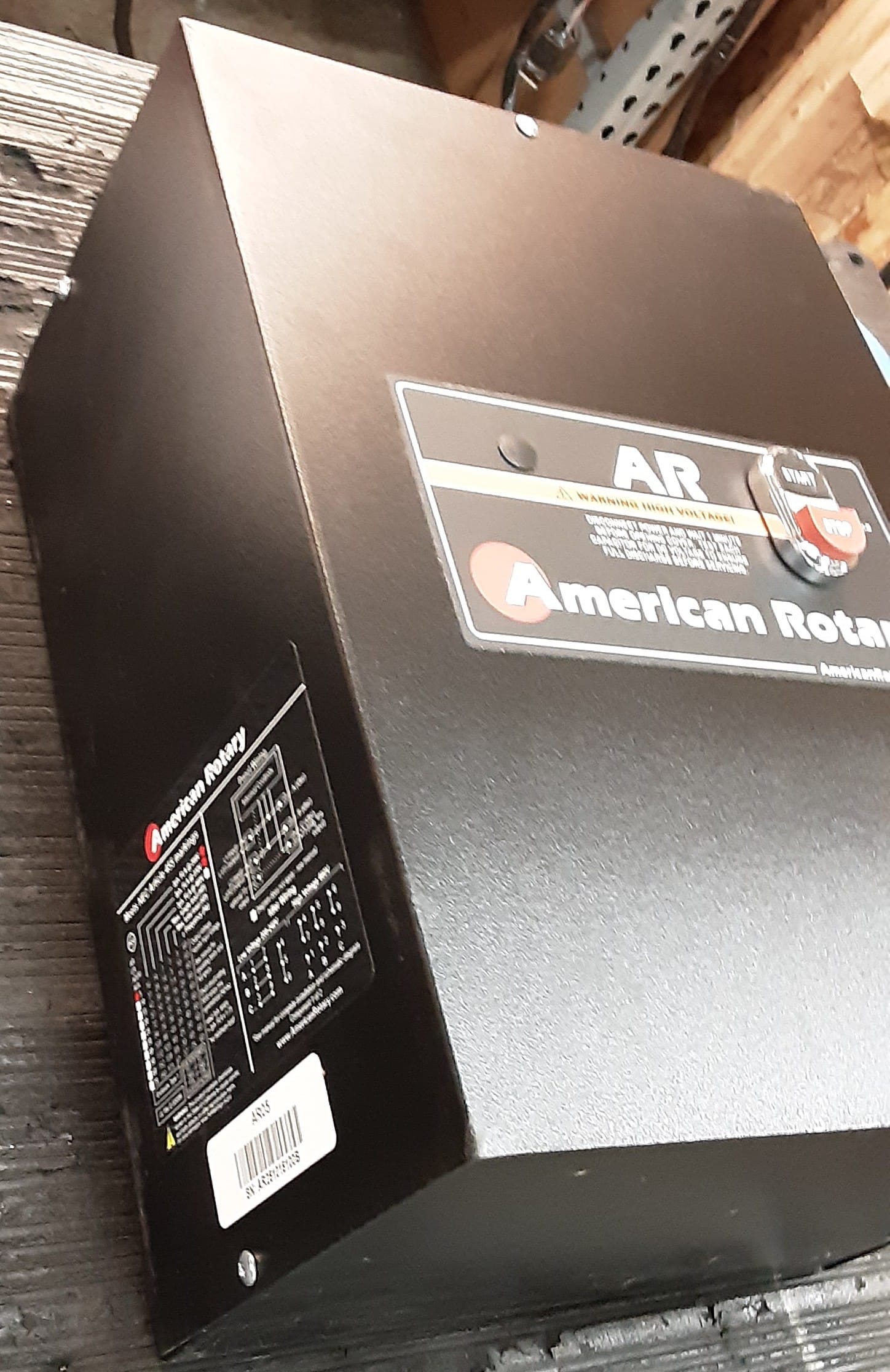 The AR Rotary Phase Converter provides utility-grade power and is designed for light/medium duty general purpose loads. Best for: Light to medium duty, general-purpose loads. This unit has a couple of the knock outs removed from the panel and a couple minor dings and scratches on the panel cover. The idler has some scratches on it and one bent through rod. Standard warranty applies