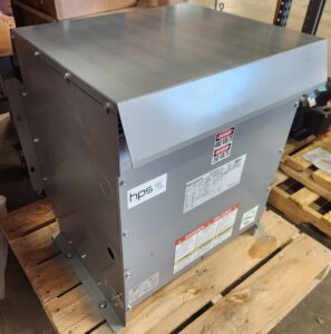 The TFHAMSG3A0045DK transformer is a three phase 240-480V isolation-transformer. This transformer will provide voltage tap options at 240 between 480v . This transformer will allow you to go delta to delta, wye to wye, or delta to wye on your power conditions. This is a scratch and dent unit that has a dent on the corner of the top cover of the unit and some scratches/chips in the paint.